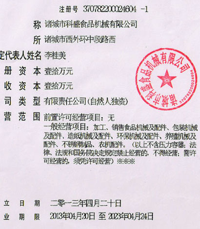 公司制企業營業執照信息公示表格由山東工商網絡商品交易監管服務網提供。